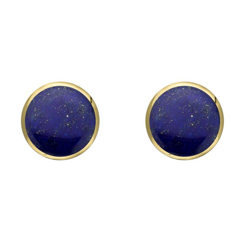 9ct Yellow Gold Lapis Lazuli 6mm Classic Medium Round Stud Earrings, E003.