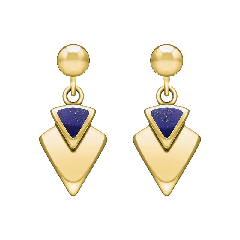9ct Yellow Gold Lapis Lazuli Arrowhead Drop Earrings, E201.