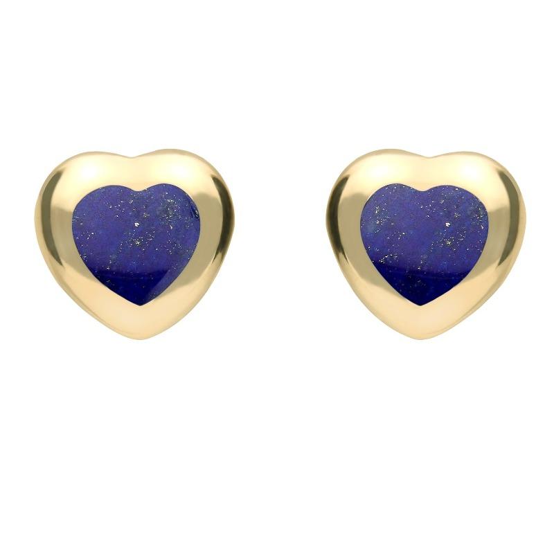 9ct Yellow Gold Lapis Lazuli Framed Heart Stud Earrings. E432.