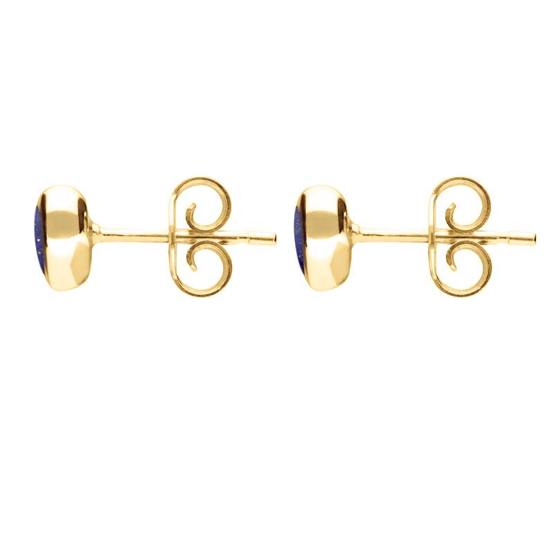 These romantic stud earrings feature beautiful heart shaped cabochons of the finest natural Lapis Lazuli. The gemstones are framed in 9ct yellow gold and highly polished for a smooth, contemporary finish. Completed with secure 9ct yellow gold post and butterfly fittings.