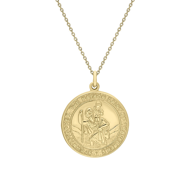 9ct Yellow Gold Large Circular Saint Christopher Necklace, CTC-266.