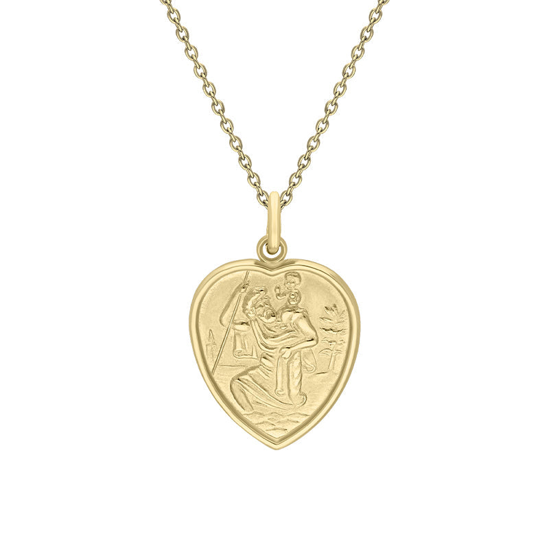 9ct Yellow Gold Large Heart Saint Christopher Necklace
