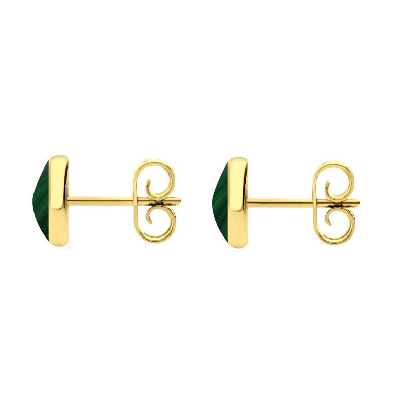 9ct Yellow Gold Malachite 6mm Classic Medium Round Stud Earrings, E003.