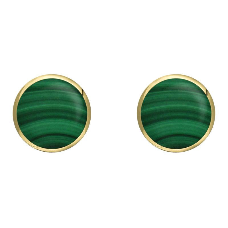 9ct Yellow Gold Malachite 8mm Classic Large Round Stud Earrings, E004.