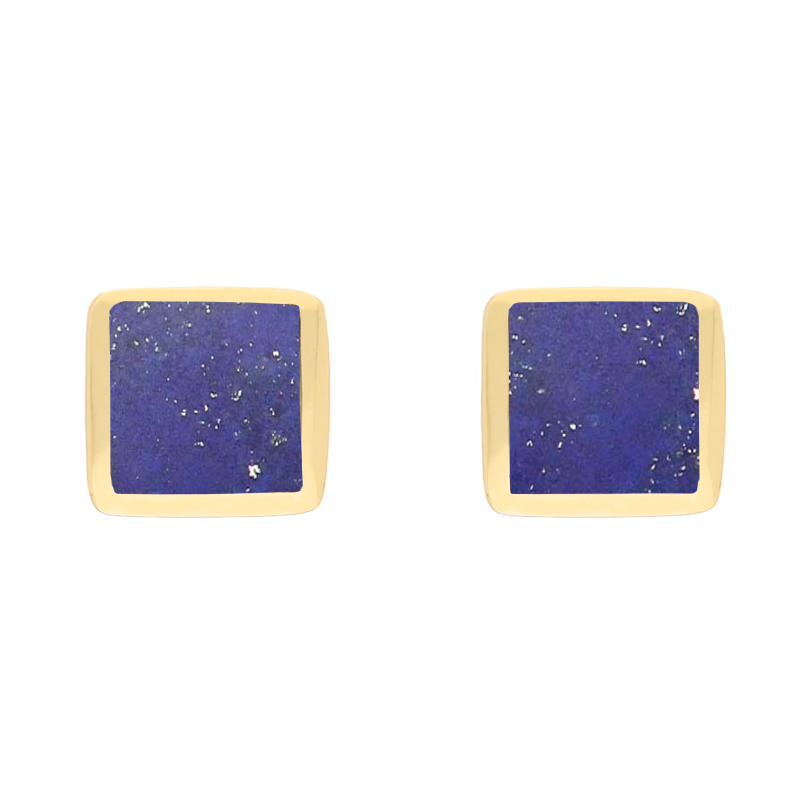 9ct Yellow Gold Sterling Silver Lapis Lazuli Stepping Stones Square Stud Earrings E1295