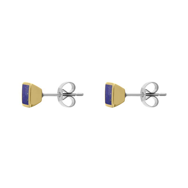 9ct Yellow Gold Sterling Silver Lapis Lazuli Stepping Stones Square Stud Earrings