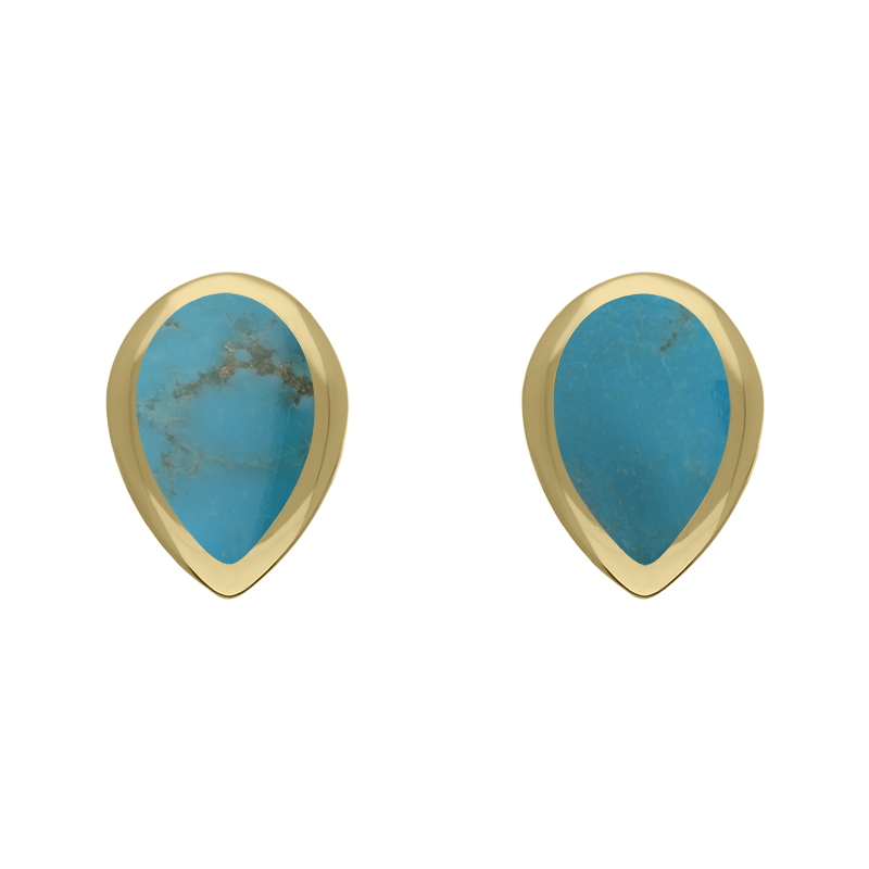 9ct Yellow Gold Sterling Silver Turquoise Stepping Stones Pear Stud Earrings E1294