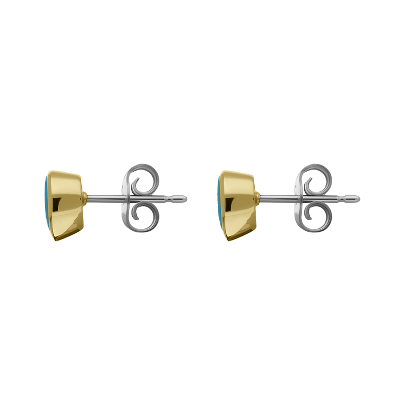 These stud earrings feature highly polished genuine Turquoise set in 9ct yellow gold frames with sterling silver post and butterfly fastenings.