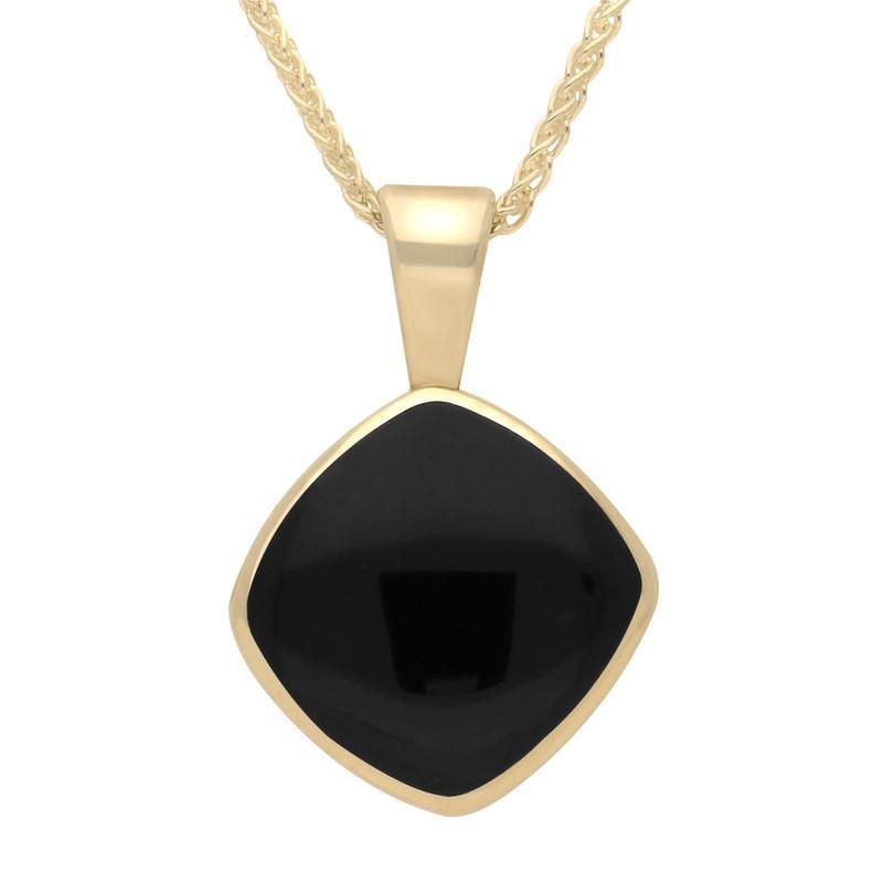 9ct Yellow Gold Whitby Jet Cushion Shaped Necklace