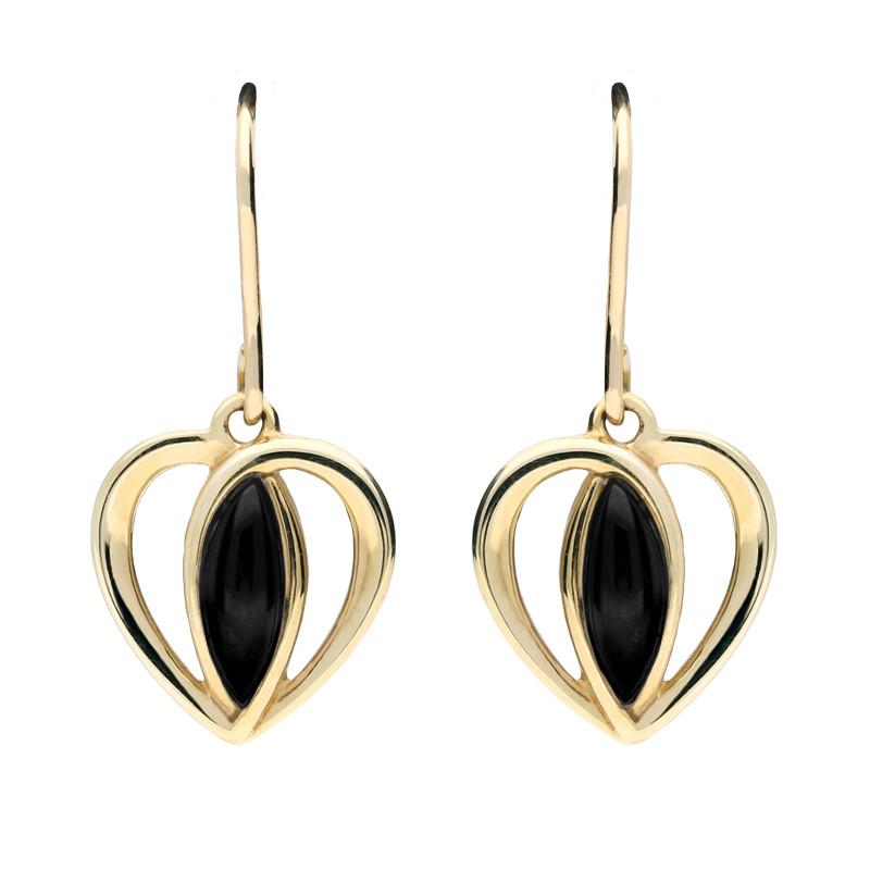9ct Yellow Gold Whitby Jet Heart Drop Earrings, E1914.