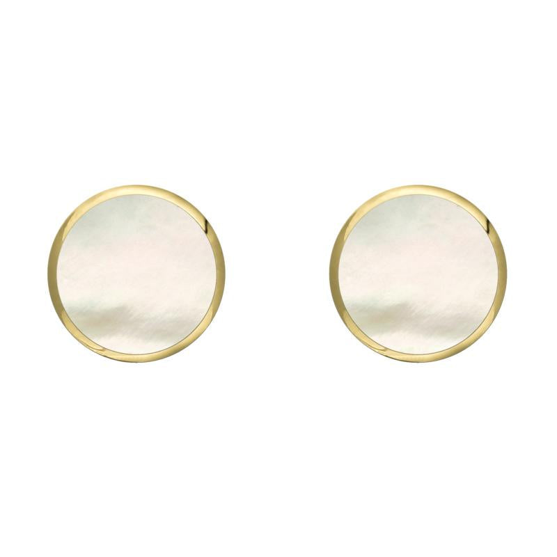 9ct Yellow Gold White Mother of Pearl 6mm Classic Medium Round Stud Earrings, E003.