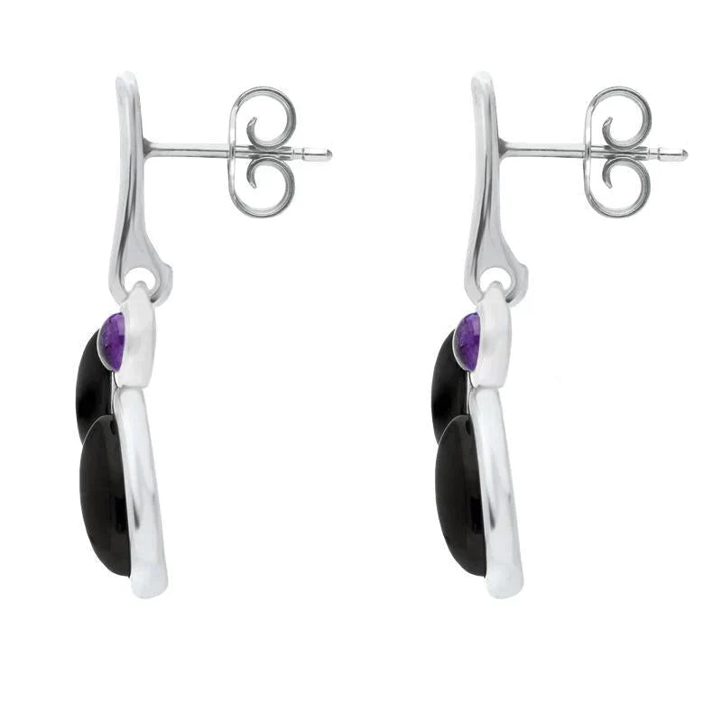 Sterling Silver Amethyst Whitby Jet Drop Stud Earrings