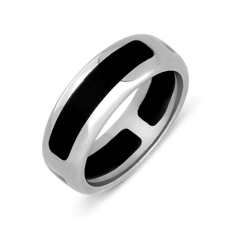 Sterling Silver and Whitby Jet 8mm Wedding Ring