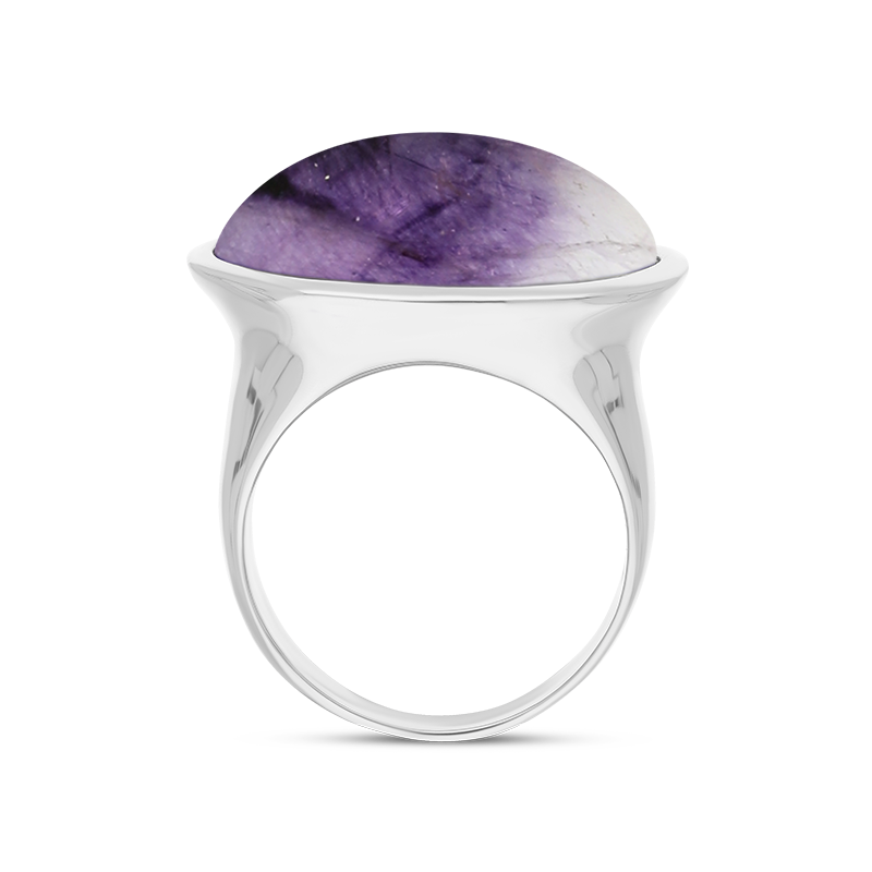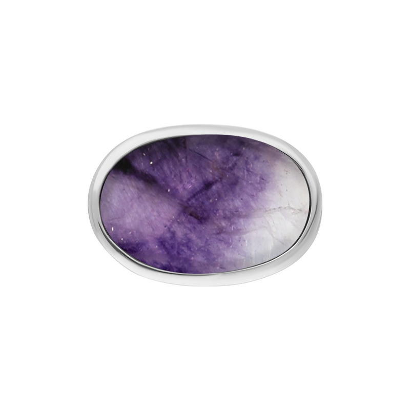 A classic, wide oval shaped sterling silver and Blue John ring. The hand polished oval Blue John gemstone sits proudly, making this ring a flattering shape for a multitude of fingers and a popular style choice. The gemstone has been sourced directly from Castleton, Derbyshire. Dimensions: 20mm x 13mm.