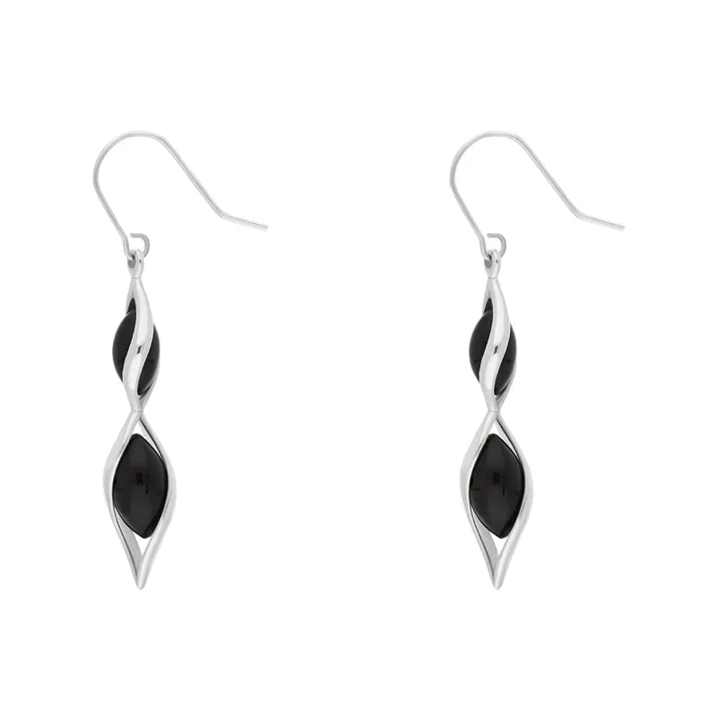 Sterling Silver Whitby Jet Double Graduated Twist Drop Earrings E1791