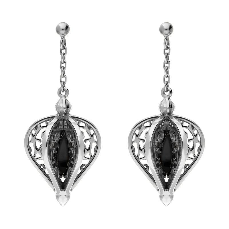 Sterling Silver Whitby Jet Flore Filigree Drop Earrings