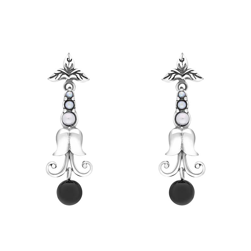 These charming earrings feature the finest Whitby Jet and Freshwater Pearl. The Freshwater Pearl creates a stunning contrast between the Whitby Jet the sterling silver as they hang gracefully and securely from sterling silver post and butterfly fitments.