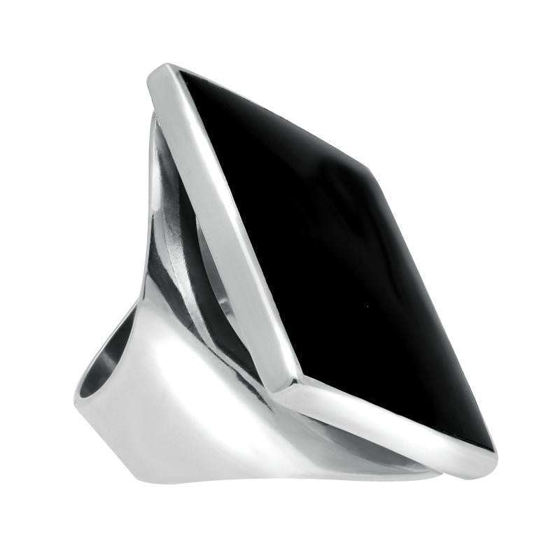 Sterling Silver Whitby Jet Large Rhombus Ring