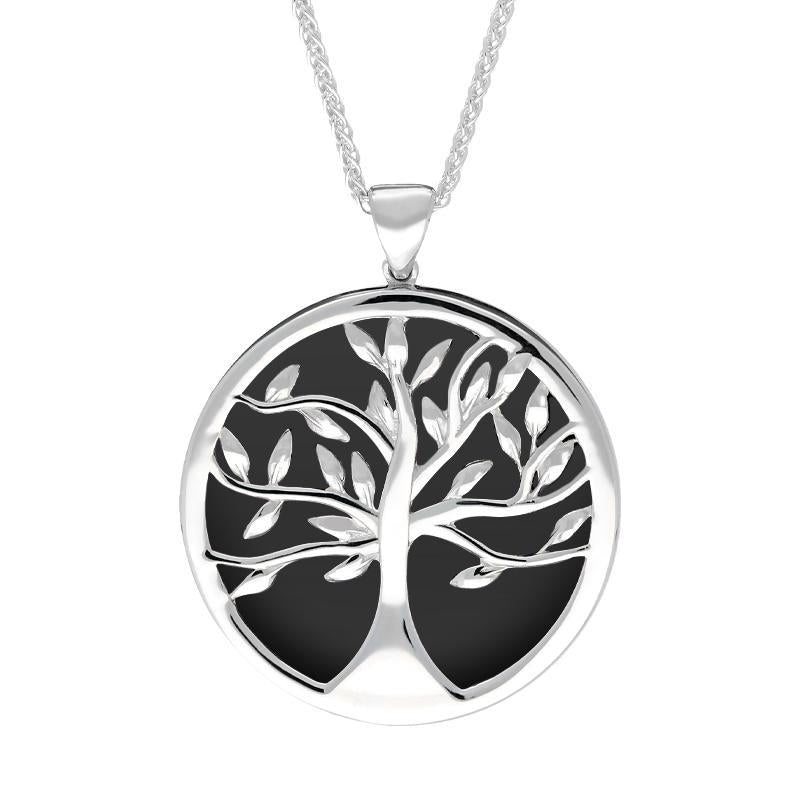 Sterling Silver Whitby Jet Large Round Tree of Life Necklace, P3418.