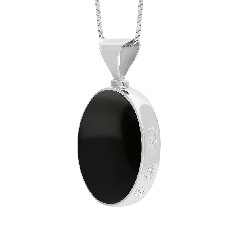 Sterling Silver Whitby Jet Malachite Hallmark Double Sided Oval Necklace, P147_FH