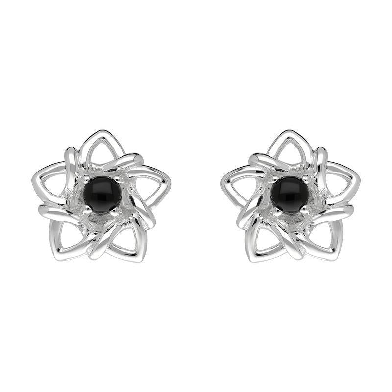 Sterling Silver Whitby Jet Open Star Flower Two Piece Set, S074.