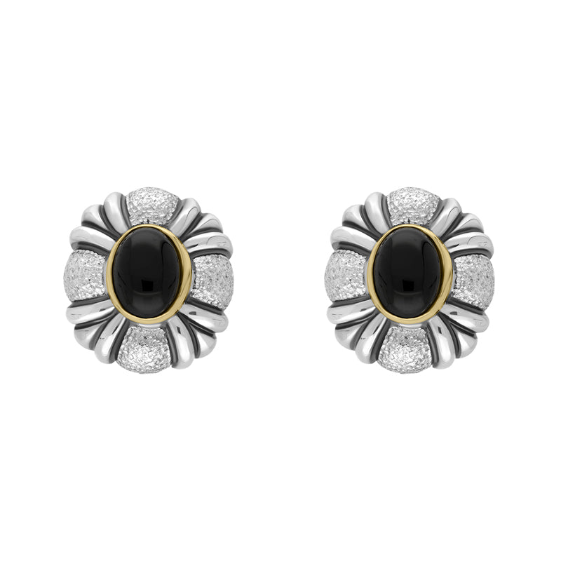 These charming sterling silver earrings, with 18ct yellow gold embellishments, feature the finest Whitby Jet, sourced directly from the north east coast of Yorkshire. The striking Whitby Jet creates a stunning contrast between the sterling silver making the perfect earrings for someone looking for a beautifully unique item of jewellery.