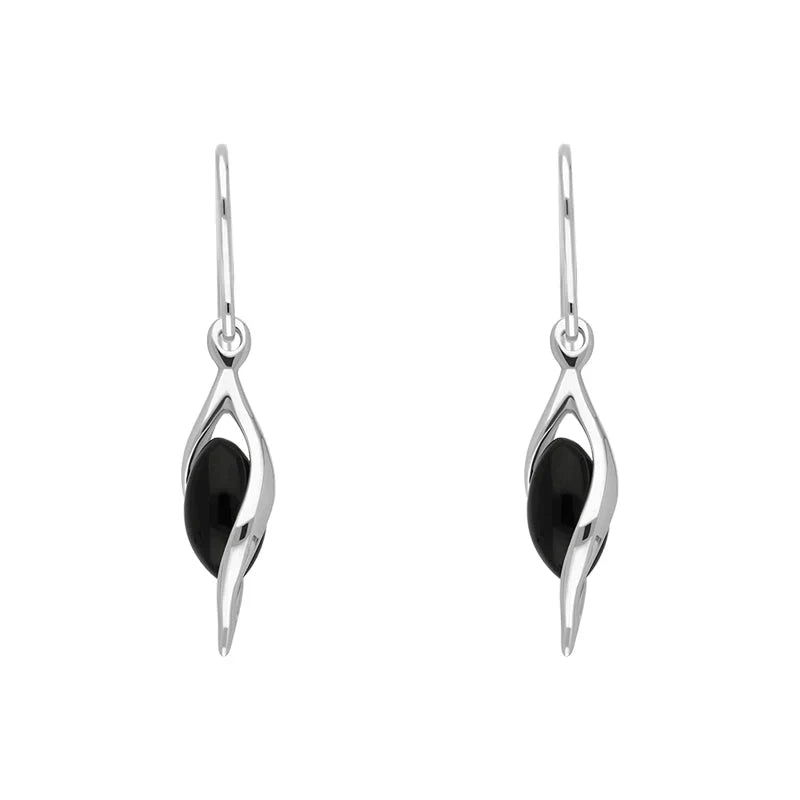 Sterling Silver Whitby Jet Twisted Drop Earrings E1768.