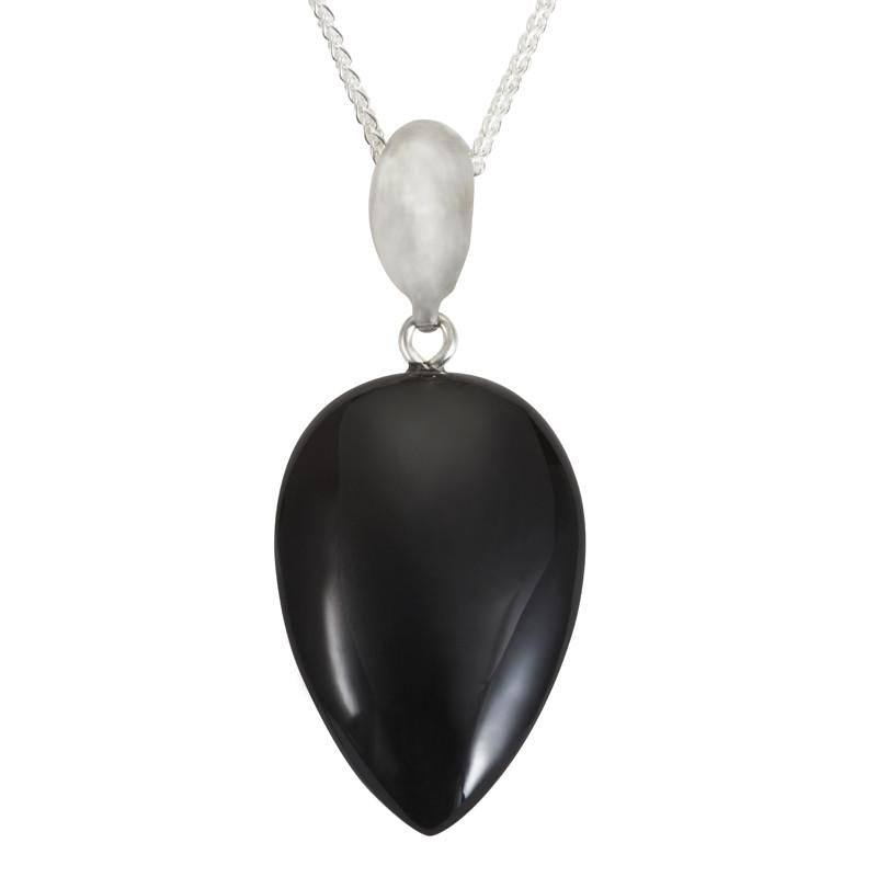 Sterling Silver Whitby Jet Upside Down Pear Necklace