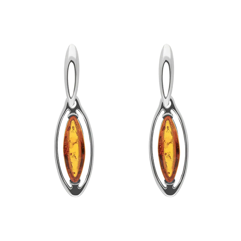 Sterling Silver Amber Marquise Open Edge Drop Earrings E1560