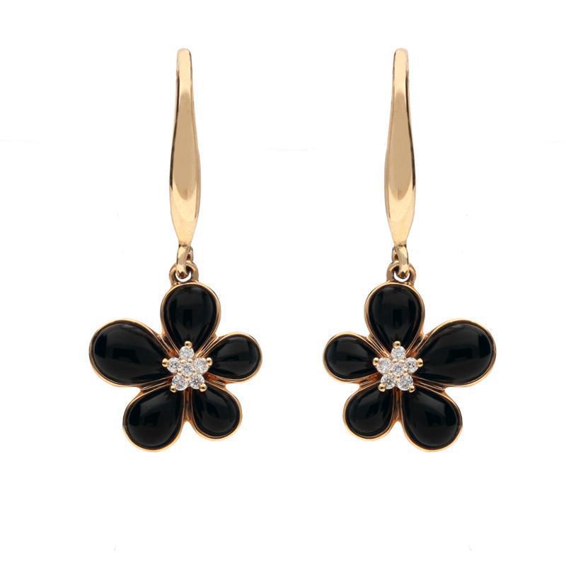 18ct Rose Gold Whitby Jet 0.075ct Diamond Small Flower Two Piece Set S159