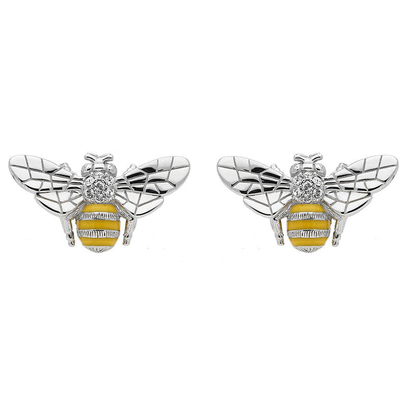 These charming bee stud earrings are meticulously handcrafted from premium sterling silver, demonstrating exceptional attention to detail. Each earring showcases a vibrant yellow enamel finish that brings the bumblebee design to life with vivid color and character. Accentuated by carefully placed Swarovski crystals, these studs catch the light beautifully, adding a subtle yet sophisticated sparkle. Designed for comfort and style, they provide a secure fit for daily wear or special occasions. A refined accessory that seamlessly combines nature-inspired elegance with expert craftsmanship, making them a treasured addition for any discerning jewellery collector.