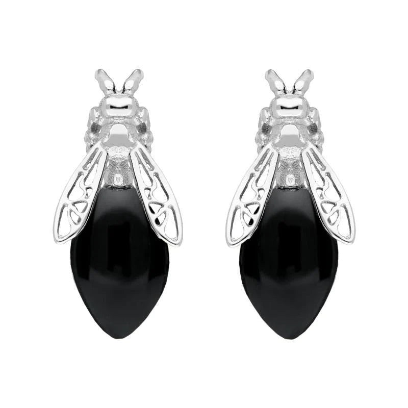 Sterling Silver Whitby Jet Bee Stud Earrings
