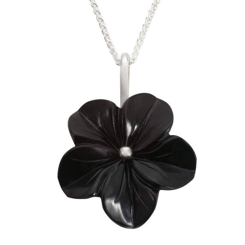 Sterling Silver Whitby Jet Tuberose 28mm Flower Necklace