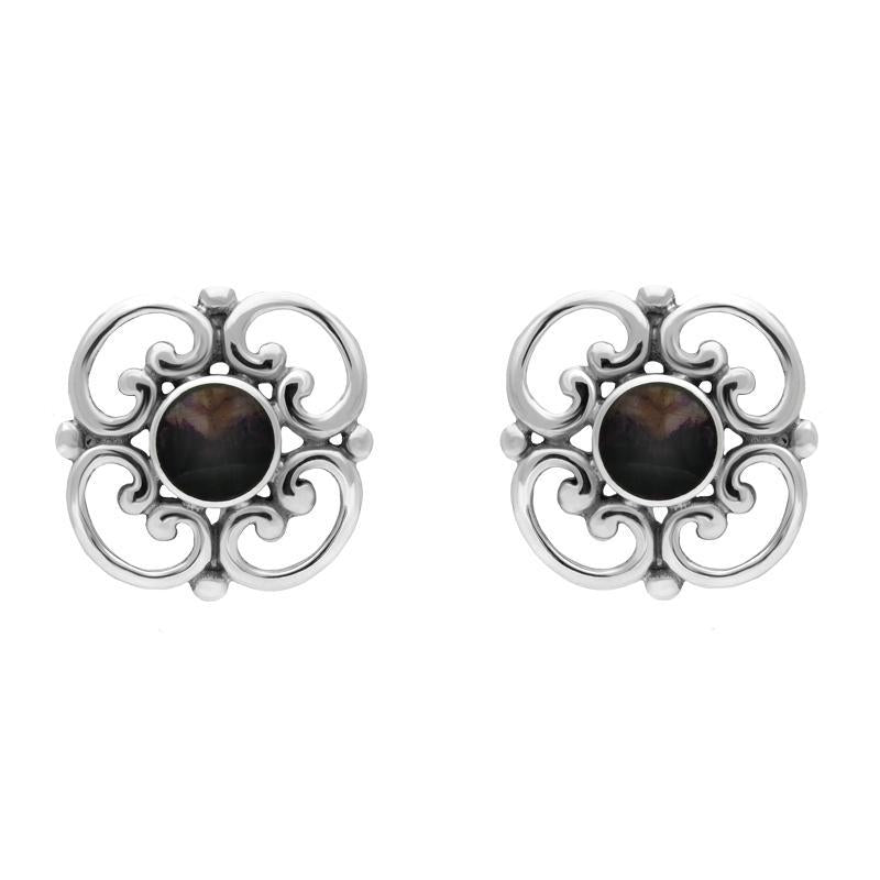 Sterling Silver Blue John Round Scroll Stud Earrings
