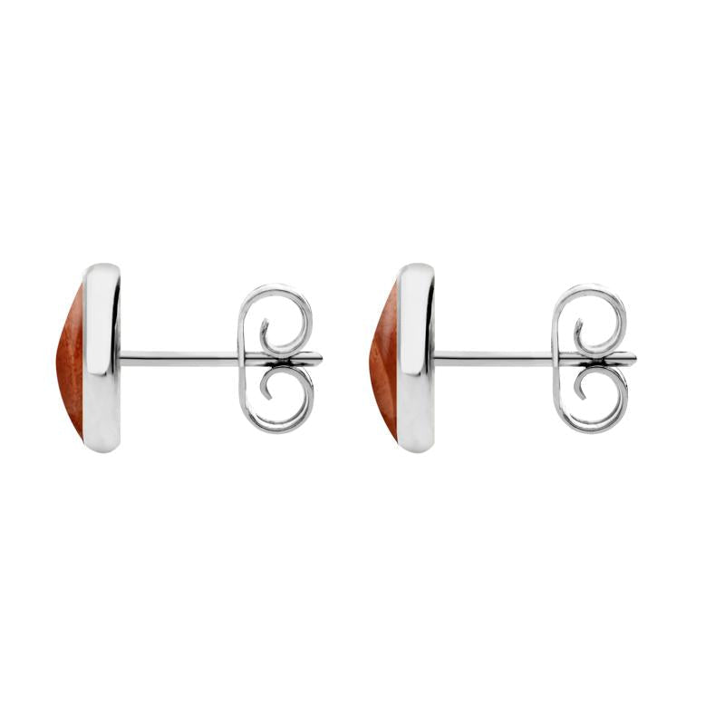 An embodiment of classic style, these sterling silver earrings feature two hand-carved circular cabochons of the finest Jasper stone. The Jasper is elegantly framed in sterling silver and the earrings are completed with secure post and butterfly fastenings, making them perfect for everyday wear.