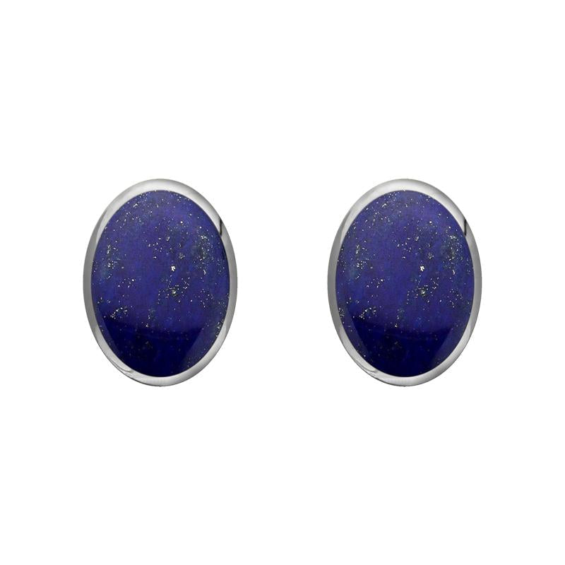 Sterling Silver Lapis Lazuli 7 x 5mm Classic Small Oval Stud Earrings, E005