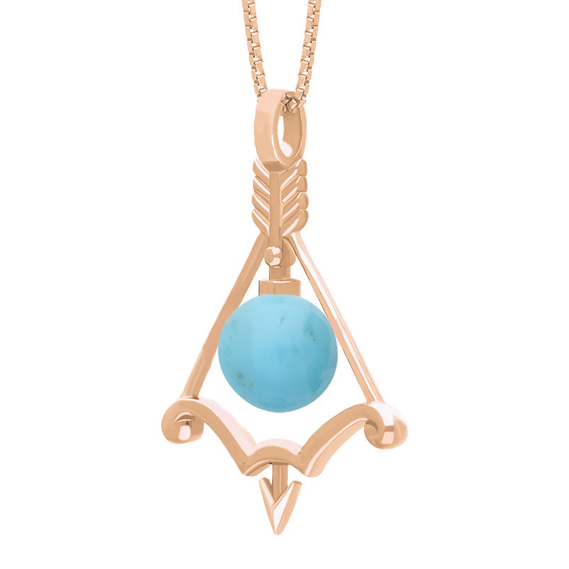 9ct Rose Gold Turquoise Zodiac Sagittarius 8mm Bead Pendant, P3619.