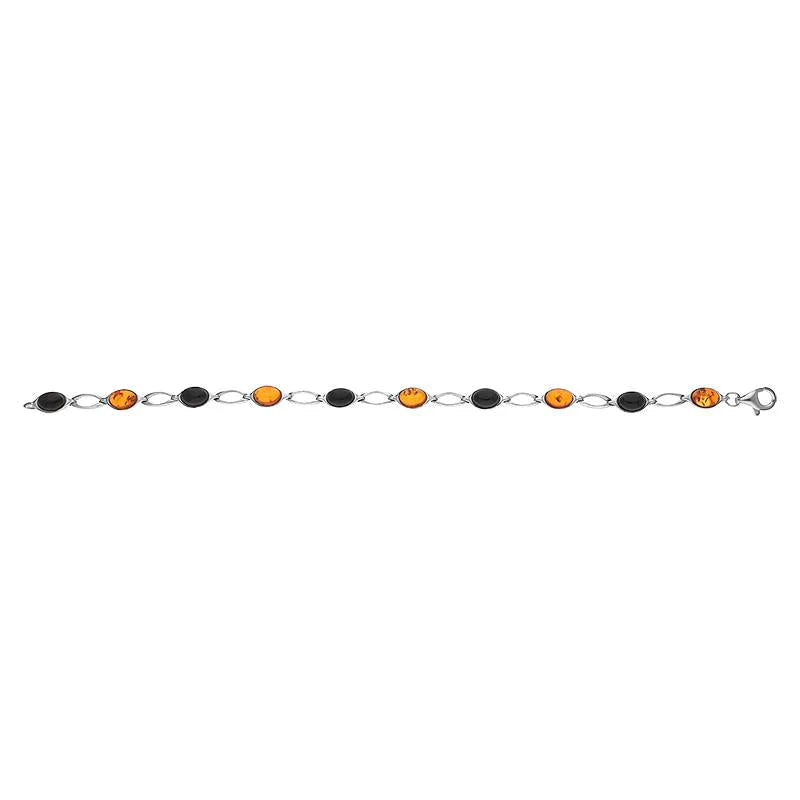 Sterling Silver Whitby Jet Amber Ten Stone Oval Bracelet