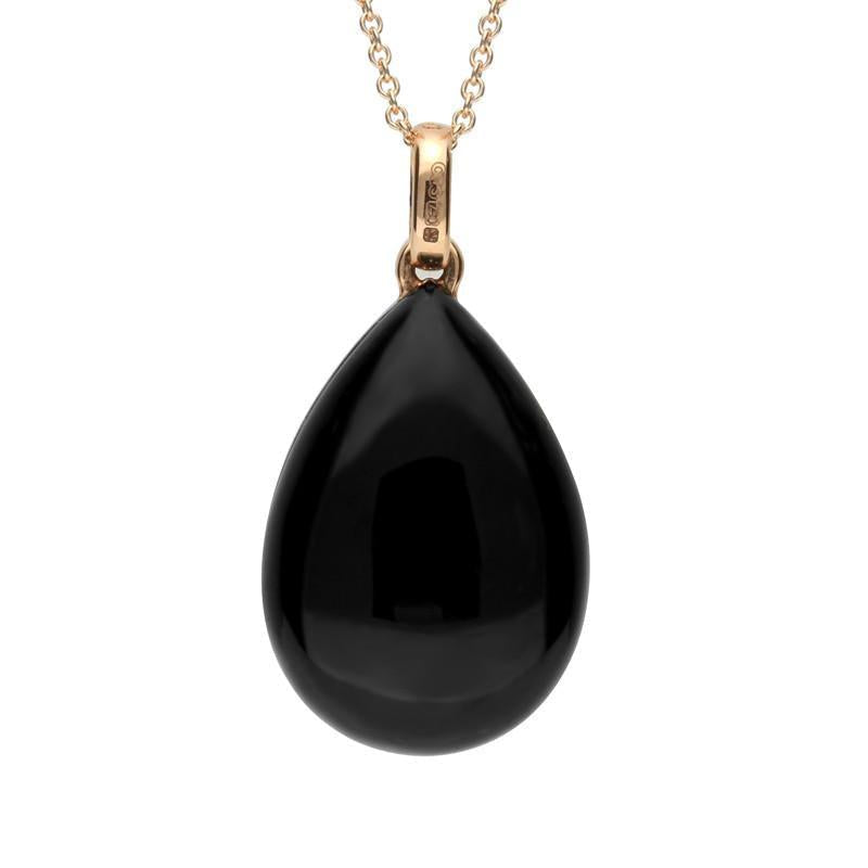 18ct Rose Gold Whitby Jet Diamond Amethyst Pear Necklace, P3071.
