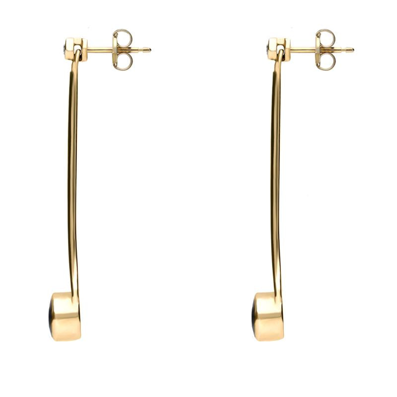 18ct Yellow Gold Whitby Jet and Diamond Long Drop Earrings, E641