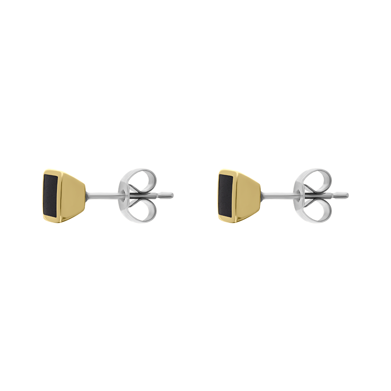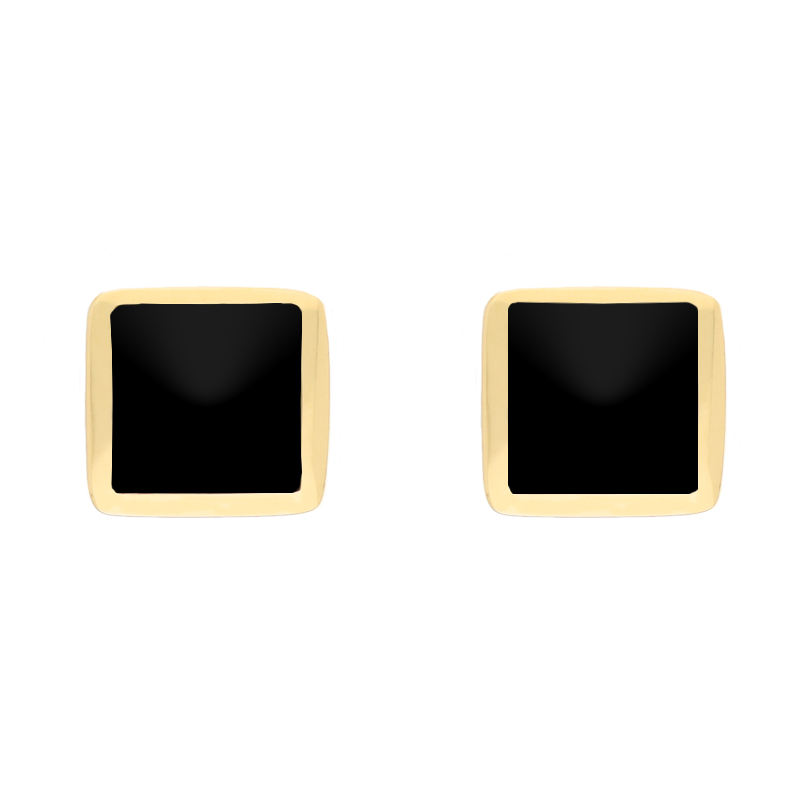 9ct Yellow Gold Sterling Silver Whitby Jet Stepping Stones Square Stud Earrings E1295