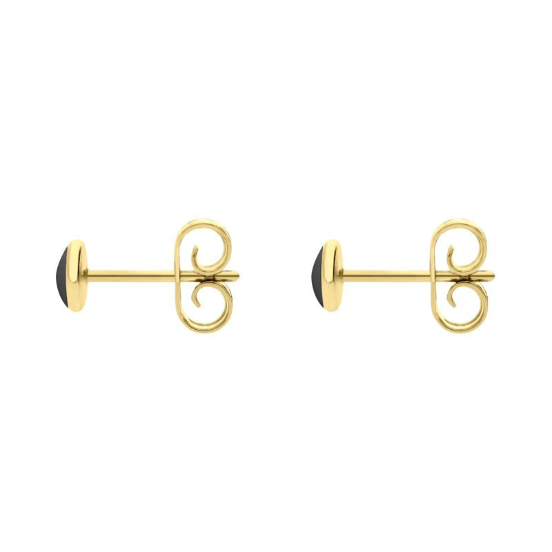 9ct Yellow Gold Whitby Jet 4mm Classic Small Round Stud Earrings. E001.