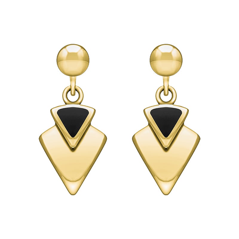 9ct Yellow Gold Whitby Jet Arrowhead Drop Earrings