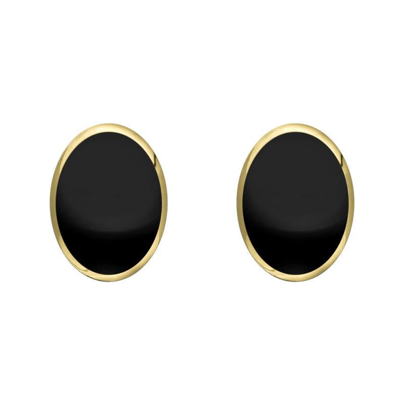 9ct Yellow Gold Whitby Jet Classic 8mm x 6mm Medium Oval Stud Earrings, E006