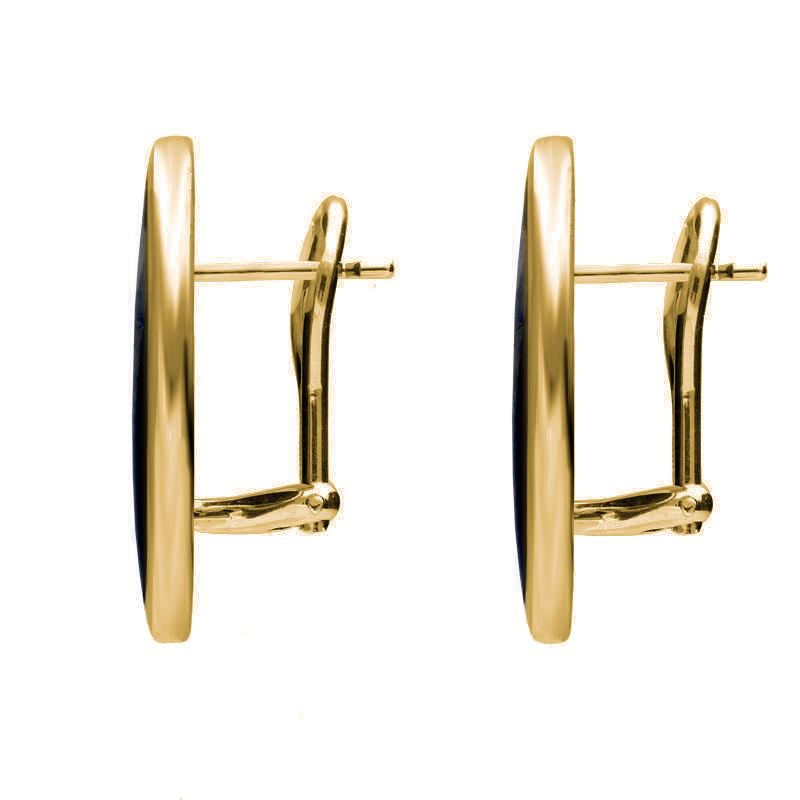 9ct Yellow Gold Whitby Jet Oval Flat Omega Stud Earrings