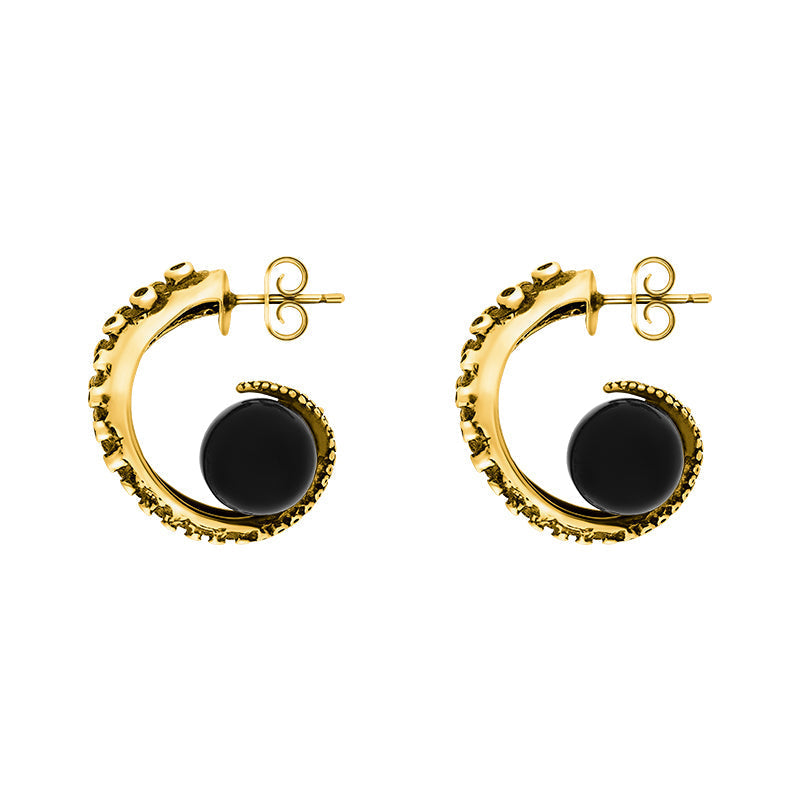Discover our beautifully crafted Sea Life collection and add to it with these 9ct yellow gold and Whitby Jet tentacle hoop earrings. Our items make the perfect gift and become treasured memories for years to come. These hoop earrings resemble a three-dimensional swirling tentacle, featuring 9ct yellow gold sucker detail holding a Whitby Jet bead. This item comes complete with 9ct yellow gold post and butterfly fastenings.