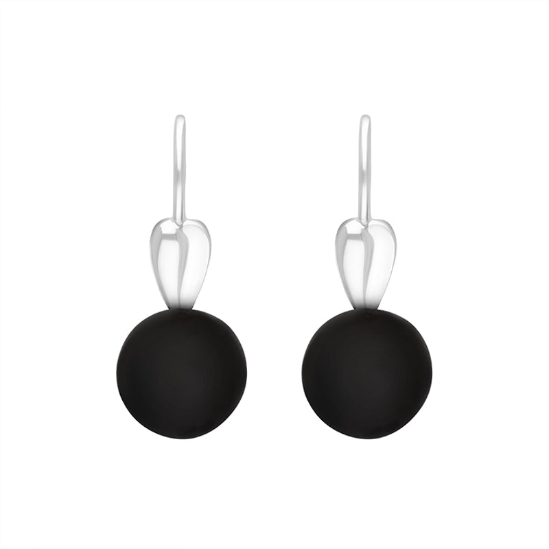 Sterling Silver Whitby Jet Bead Hook Earrings