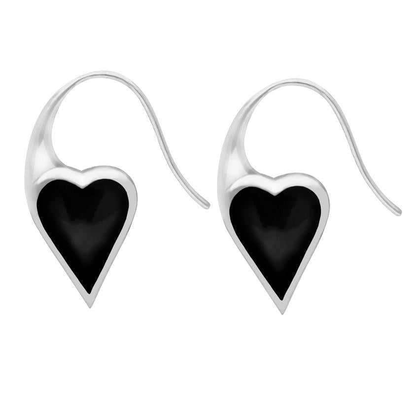 Sterling Silver Whitby Jet Essence Heart Drop Earrings. E2015.