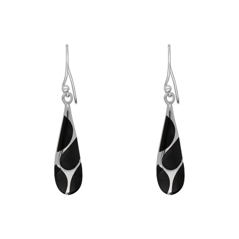 Sterling Silver Whitby Jet Four Stone Slim Tear Drop Earrings E594