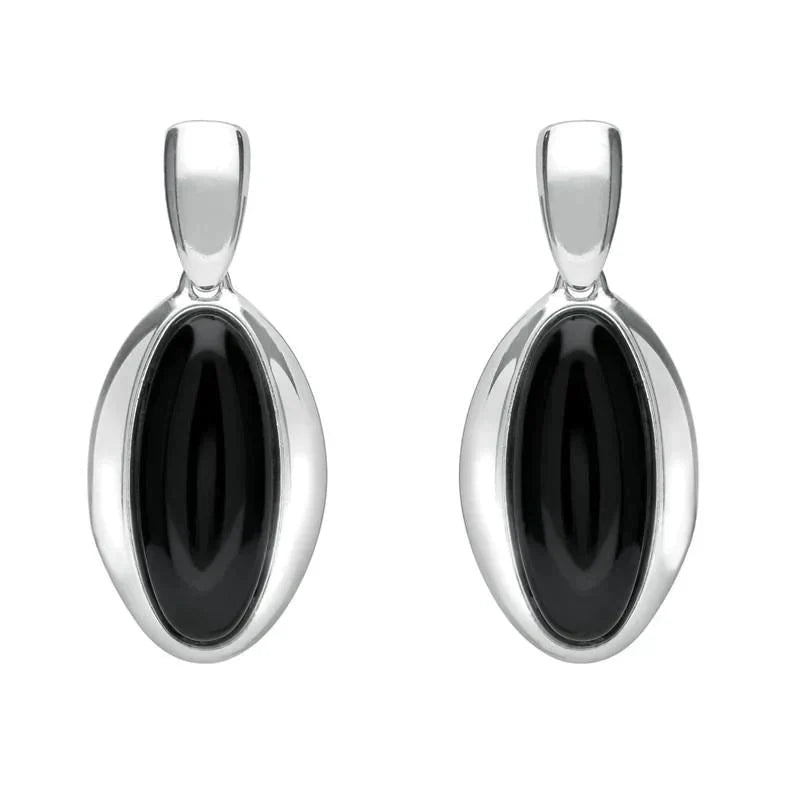 Sterling Silver Whitby Jet Heritage Long Oval Drop Earrings